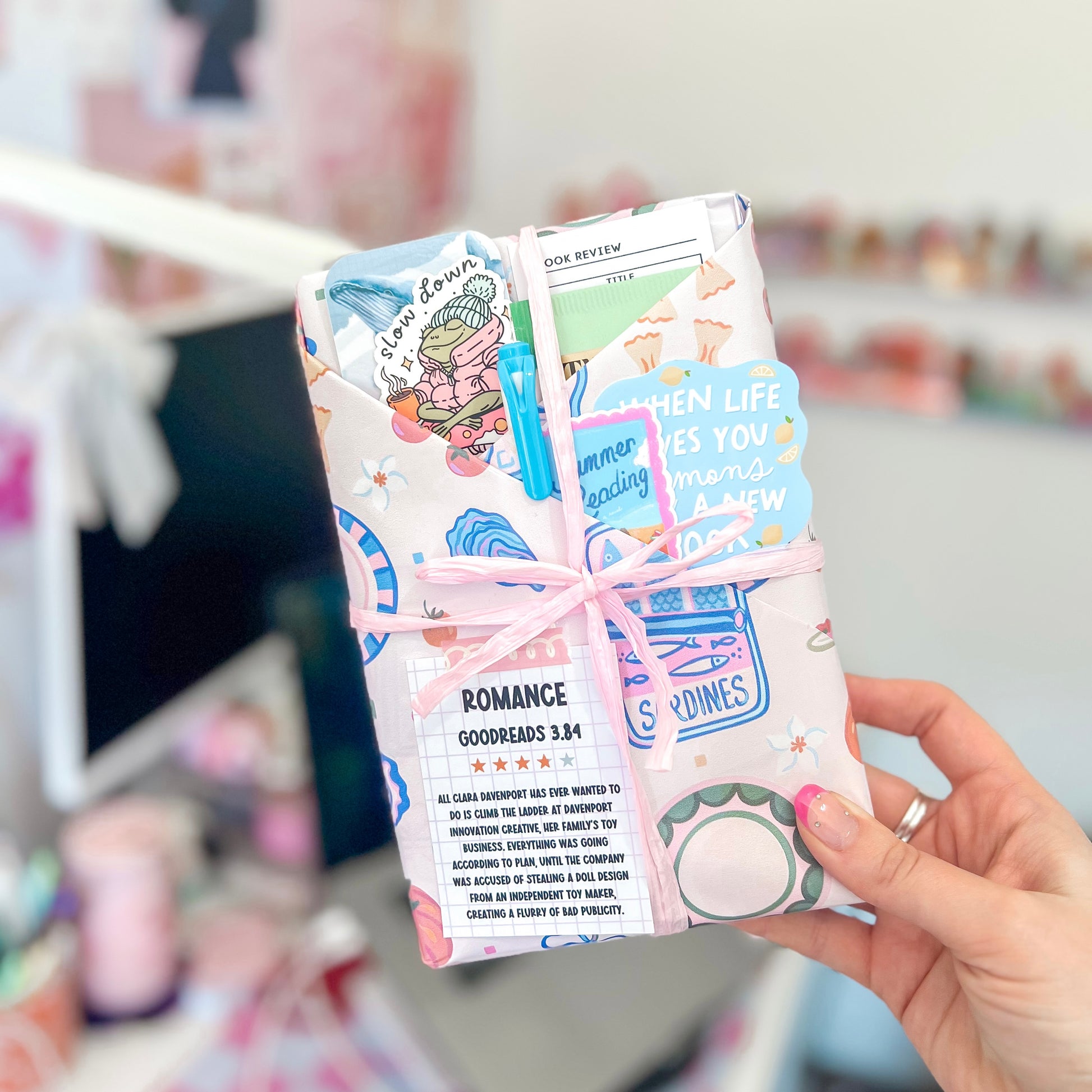Unwrap a book totally blind! Each book is beautifully wrapped and comes with a bookmark, stickers, annotation pen, review card, and a sweet treat. The perfect gift or self-care pick-me-up for any book lover!